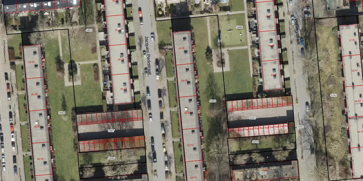 Het perceel waarop Jacques Perkstraat 32 staat heeft een oppervlakte van 2453 m². Dit is een zeer groot perceel. De perceeloppervlakte wordt geregistreerd door het Kadaster. Gedetailleerde informatie over de maten van dit perceel kunt u vinden in het rapport Kadastrale kaart met maatvoering van Jacques Perkstraat 32.