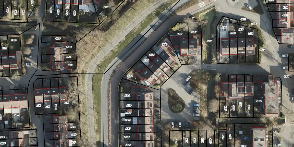 Gebruik de zoekbalk of klik op een perceel voor informatie over de adressen binnen dit perceel.