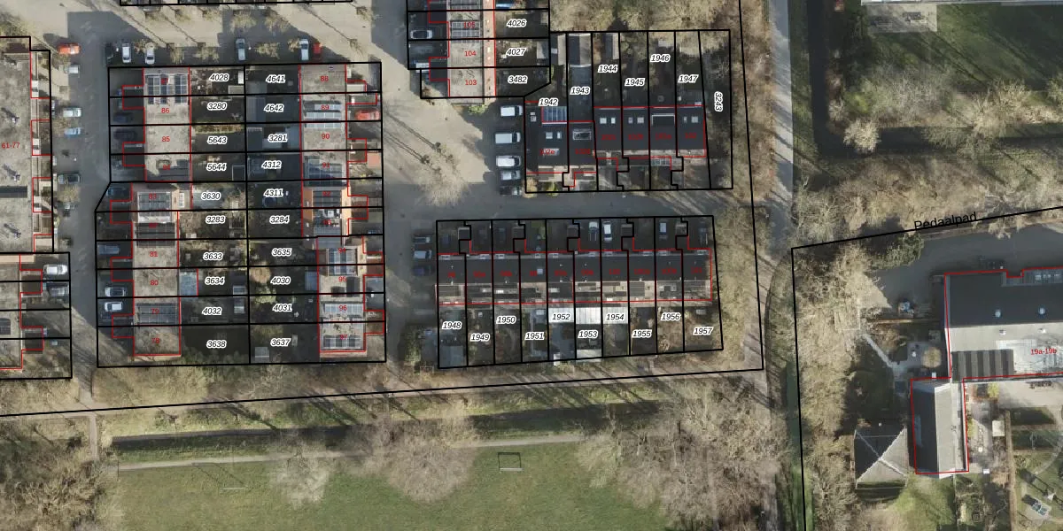 Gebruik de zoekbalk of klik op een perceel voor informatie over de adressen binnen dit perceel.