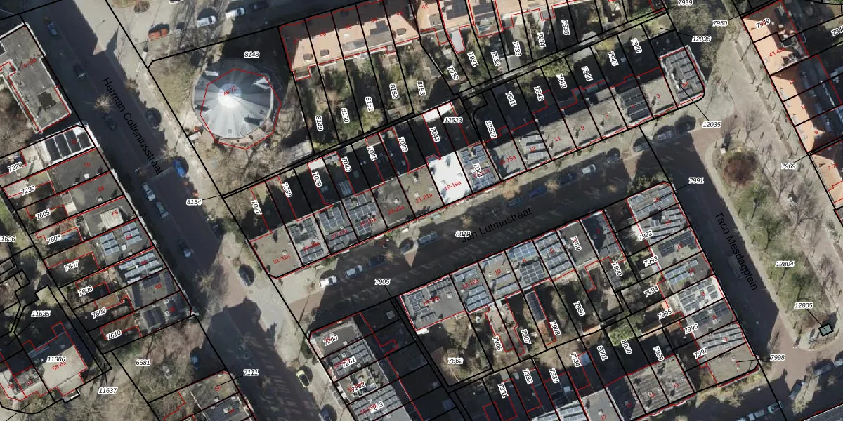 Het perceel waarop Jan Lutmastraat 21 staat heeft een oppervlakte van 166 m². Dit is een middelgroot perceel. De perceeloppervlakte wordt geregistreerd door het Kadaster. Gedetailleerde informatie over de maten van dit perceel kunt u vinden in het rapport Kadastrale kaart met maatvoering van Jan Lutmastraat 21.