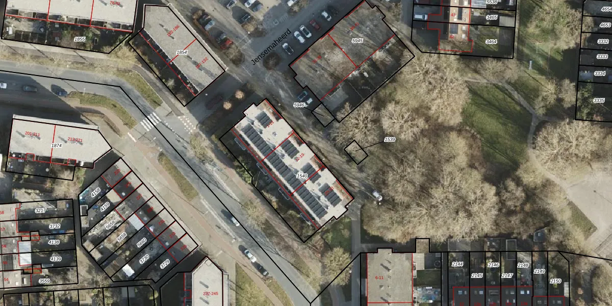 Jensemaheerd 14 is gelegen op kadastraal perceel GNG01AB1540. Deze kadastrale aanduiding is uniek en wordt gebruikt door het Kadaster om eigendomsrechten en andere zakelijke rechten vast te leggen. Het perceel maakt onderdeel uit van de kadastrale gemeente Groningen.