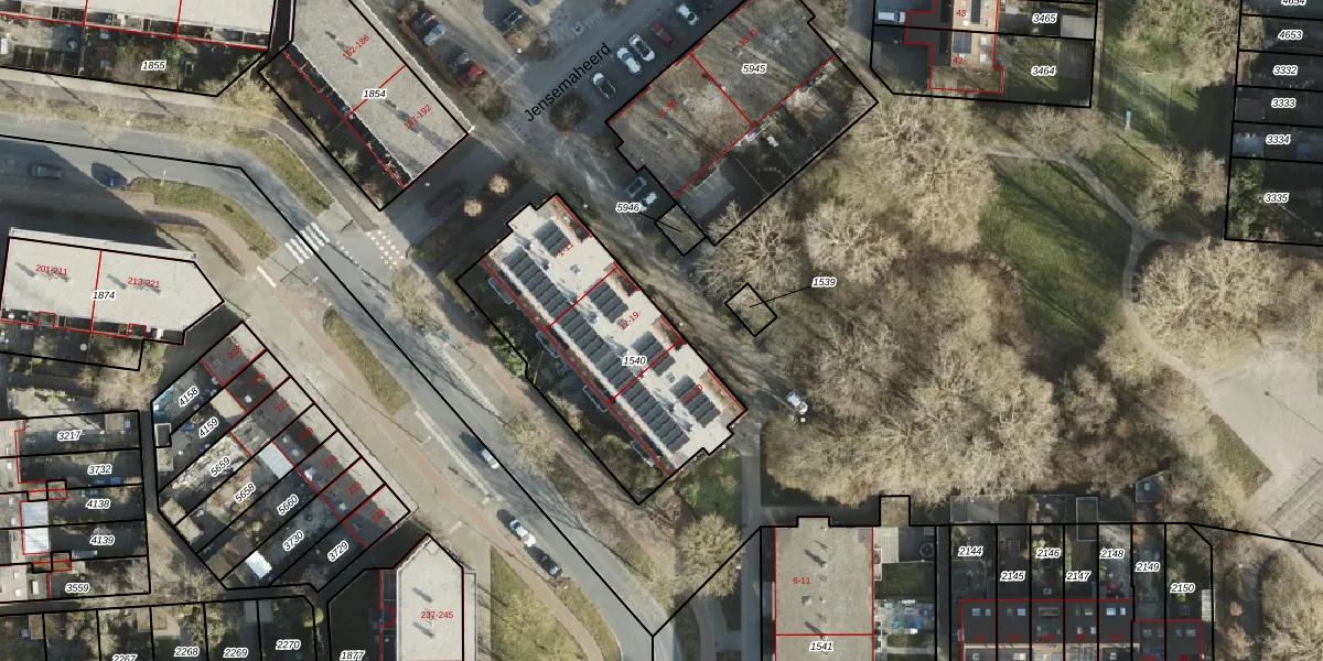 Jensemaheerd 15 is gelegen op kadastraal perceel GNG01AB1540. Deze kadastrale aanduiding is uniek en wordt gebruikt door het Kadaster om eigendomsrechten en andere zakelijke rechten vast te leggen. Het perceel maakt onderdeel uit van de kadastrale gemeente Groningen.