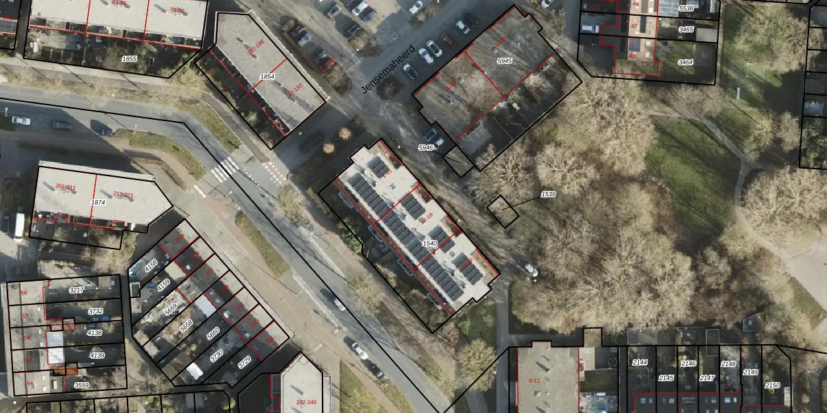 Jensemaheerd 16 is gelegen op kadastraal perceel GNG01AB1540. Deze kadastrale aanduiding is uniek en wordt gebruikt door het Kadaster om eigendomsrechten en andere zakelijke rechten vast te leggen. Het perceel maakt onderdeel uit van de kadastrale gemeente Groningen.