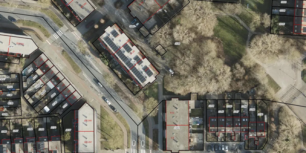 Het adres ligt op het perceel GNG01-AB-1540, dat zich in de kadastrale gemeente Groningen bevindt. Het perceel is 943 m² groot. Dat is kleiner dan de gemiddelde perceeloppervlakte in Groningen, dat op 2461,56 m² ligt. De grootste perceeloppervlakte in de kadastrale gemeente is 1,25 km². De kleinste oppervlakte bedraagt 0 m². Op het perceel liggen in totaal 30 adressen. De laatste wijziging in het de Basisregistratie Kadaster (BRK) was op 29-05-2008.
