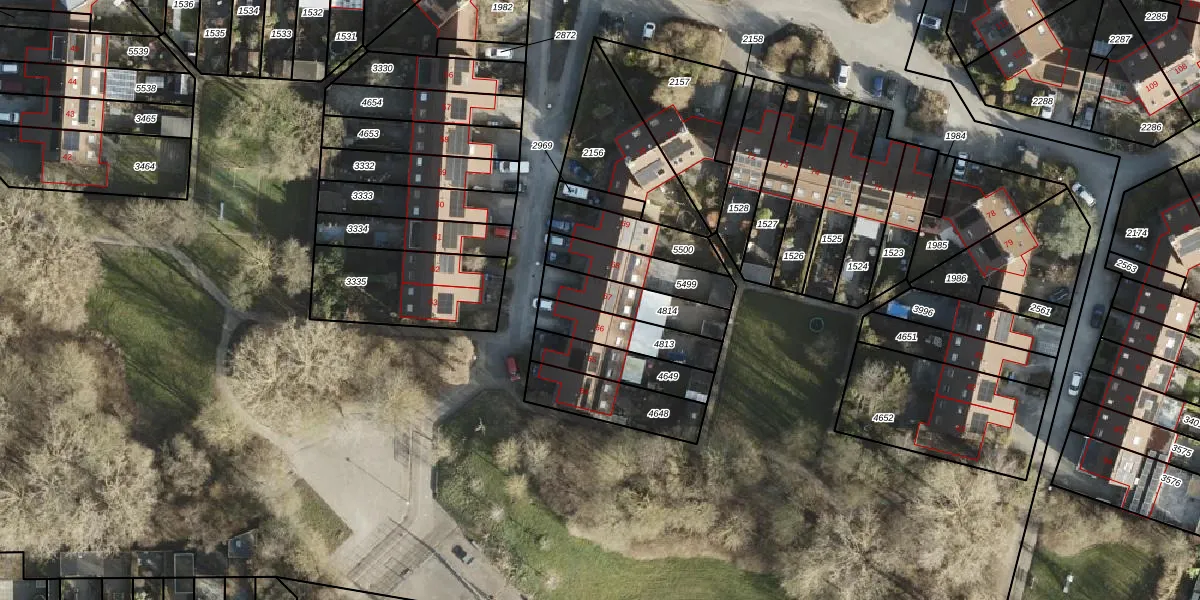 Gebruik de zoekbalk of klik op een perceel voor informatie over de adressen binnen dit perceel.