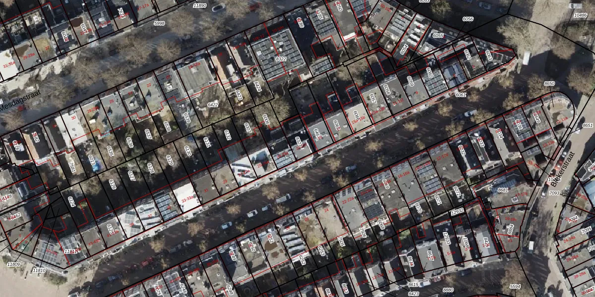 Het adres is gelegen op perceel 8323 in de sectie C en de kadastrale gemeente Groningen. De kadastrale aanduiding is aldus GNG00-C-8323. Het perceel is 99 m² groot. Dat is kleiner dan de gemiddelde perceeloppervlakte in Groningen, dat op 770,65 m² ligt. Het kleinste perceel in de kadastrale gemeente is 0 m² groot. De grootste perceeloppervlakte is 31,8 ha. Op het perceel zijn 7 adressen aanwezig. De laatste wijziging in het de Basisregistratie Kadaster (BRK) was op 01-08-2003.