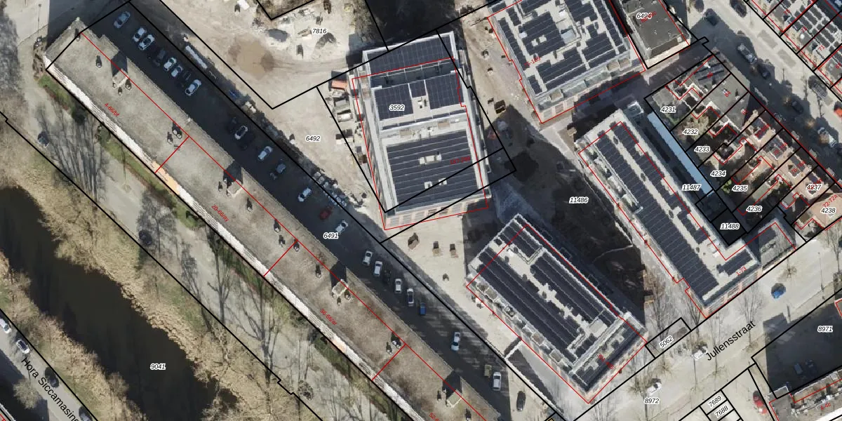 Het perceel waarop Jullensstraat 247 staat heeft een oppervlakte van 817 m². Dit is een groot perceel. De perceeloppervlakte wordt geregistreerd door het Kadaster. Gedetailleerde informatie over de maten van dit perceel kunt u vinden in het rapport Kadastrale kaart met maatvoering van Jullensstraat 247.