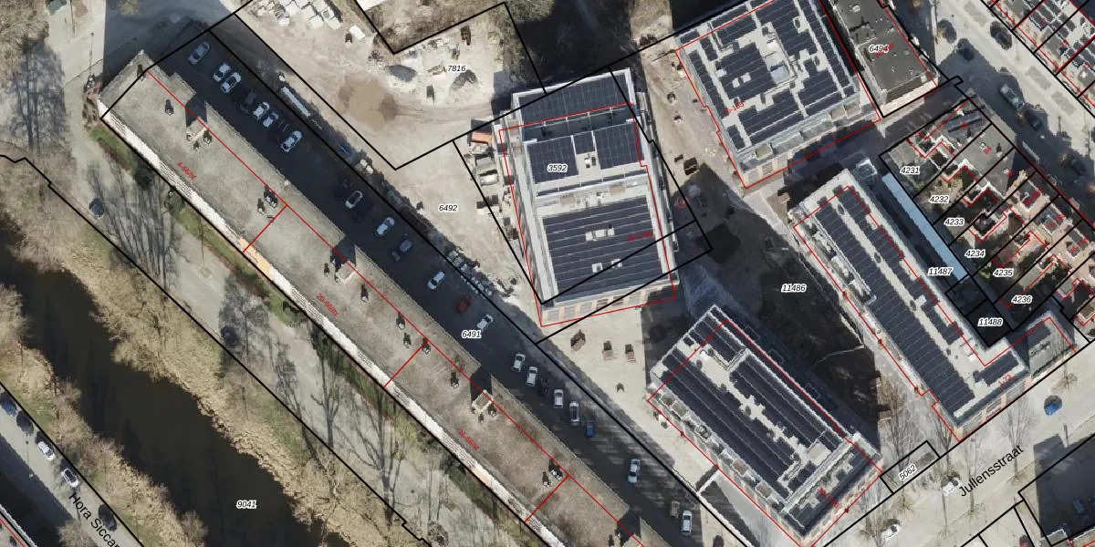 Het perceel waarop Jullensstraat 291 staat heeft een oppervlakte van 1060 m². Dit is een zeer groot perceel. De perceeloppervlakte wordt geregistreerd door het Kadaster. Gedetailleerde informatie over de maten van dit perceel kunt u vinden in het rapport Kadastrale kaart met maatvoering van Jullensstraat 291.