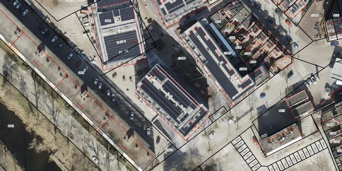 Het perceel waarop Jullensstraat 315 staat heeft een oppervlakte van 5241 m². Dit is een zeer groot perceel. De perceeloppervlakte wordt geregistreerd door het Kadaster. Gedetailleerde informatie over de maten van dit perceel kunt u vinden in het rapport Kadastrale kaart met maatvoering van Jullensstraat 315.