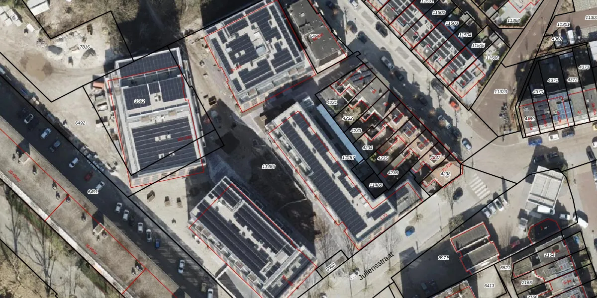 Het perceel waarop Jullensstraat 33 staat heeft een oppervlakte van 5241 m². Dit is een zeer groot perceel. De perceeloppervlakte wordt geregistreerd door het Kadaster. Gedetailleerde informatie over de maten van dit perceel kunt u vinden in het rapport Kadastrale kaart met maatvoering van Jullensstraat 33.