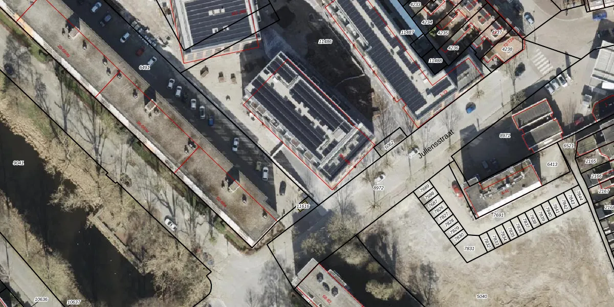 Het perceel waarop Jullensstraat 401 staat heeft een oppervlakte van 5241 m². Dit is een zeer groot perceel. De perceeloppervlakte wordt geregistreerd door het Kadaster. Gedetailleerde informatie over de maten van dit perceel kunt u vinden in het rapport Kadastrale kaart met maatvoering van Jullensstraat 401.