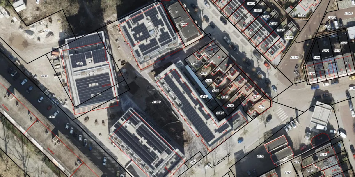 Het perceel waarop Jullensstraat 51 staat heeft een oppervlakte van 5241 m². Dit is een zeer groot perceel. De perceeloppervlakte wordt geregistreerd door het Kadaster. Gedetailleerde informatie over de maten van dit perceel kunt u vinden in het rapport Kadastrale kaart met maatvoering van Jullensstraat 51.