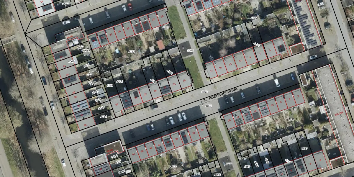 Gebruik de zoekbalk of klik op een perceel voor informatie over de adressen binnen dit perceel.