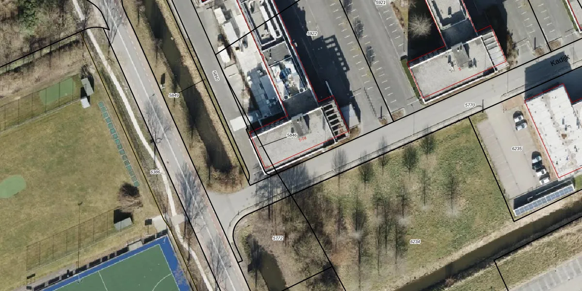 Het perceel waarop Kadijk 7-b staat heeft een oppervlakte van 2261 m². Dit is een zeer groot perceel. De perceeloppervlakte wordt geregistreerd door het Kadaster. Gedetailleerde informatie over de maten van dit perceel kunt u vinden in het rapport Kadastrale kaart met maatvoering van Kadijk 7-b.