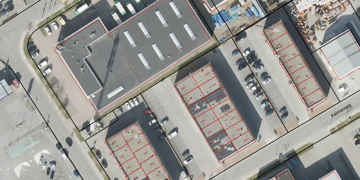 Het perceel waarop Kalmarweg 14-7 staat heeft een oppervlakte van 3640 m². Dit is een zeer groot perceel. De perceeloppervlakte wordt geregistreerd door het Kadaster. Gedetailleerde informatie over de maten van dit perceel kunt u vinden in het rapport Kadastrale kaart met maatvoering van Kalmarweg 14-7.