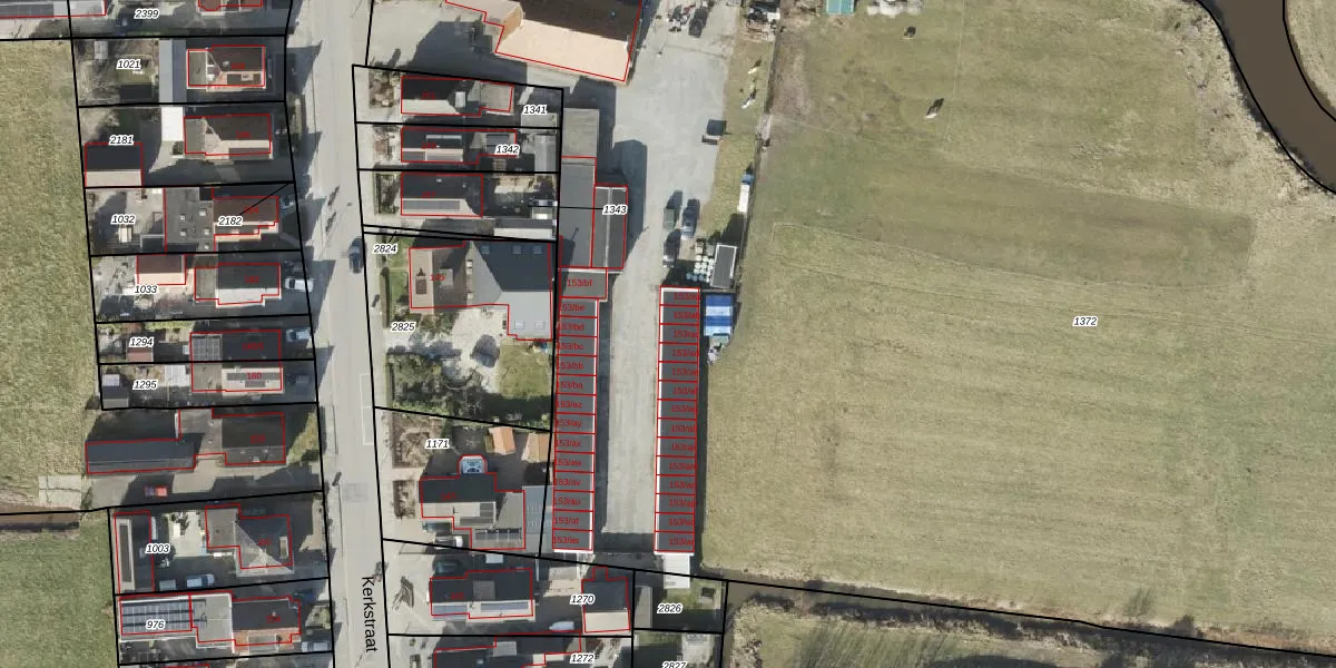 Het perceel waarop Kerkstraat 153-ac staat heeft een oppervlakte van 1,9 ha. Dit is een zeer groot perceel. De perceeloppervlakte wordt geregistreerd door het Kadaster. Gedetailleerde informatie over de maten van dit perceel kunt u vinden in het rapport Kadastrale kaart met maatvoering van Kerkstraat 153-ac.