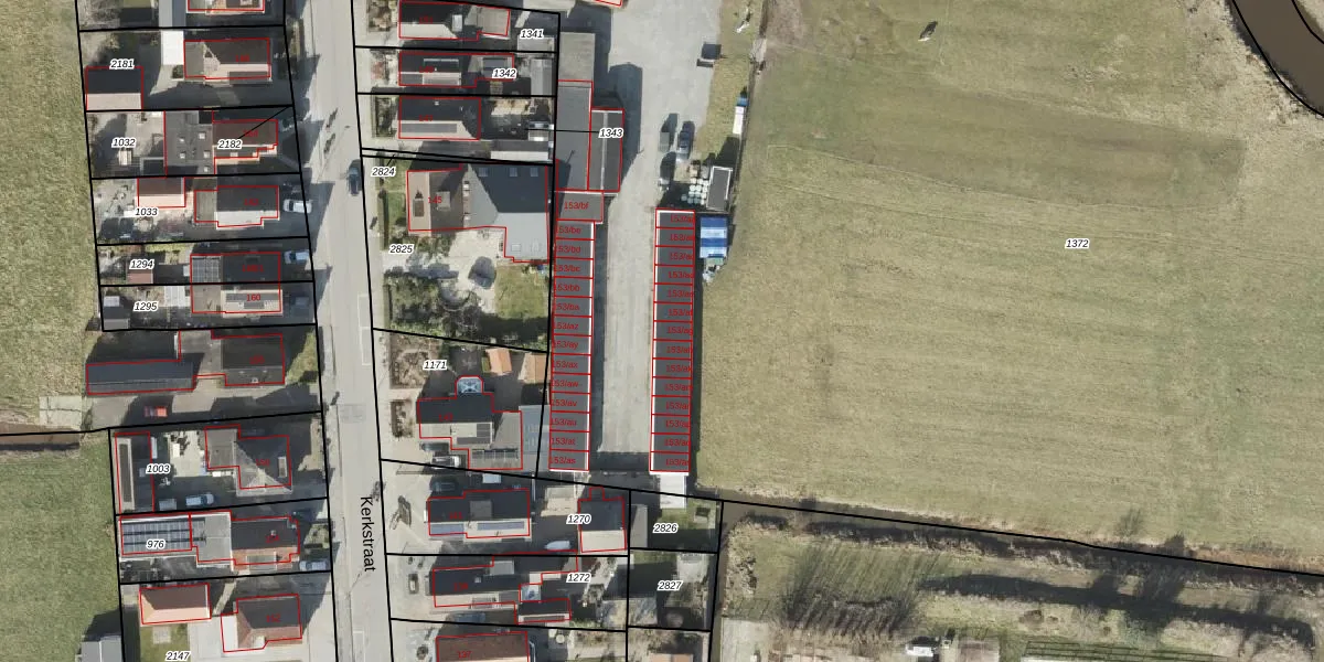 Het perceel waarop Kerkstraat 153-ag staat heeft een oppervlakte van 1,9 ha. Dit is een zeer groot perceel. De perceeloppervlakte wordt geregistreerd door het Kadaster. Gedetailleerde informatie over de maten van dit perceel kunt u vinden in het rapport Kadastrale kaart met maatvoering van Kerkstraat 153-ag.