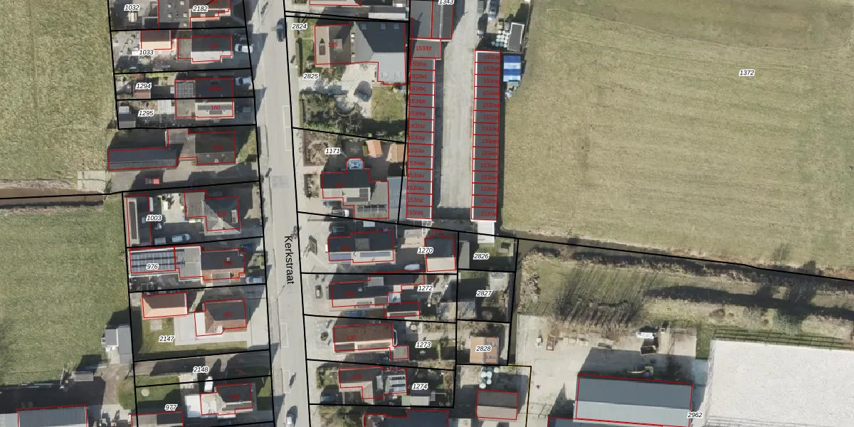 Het perceel waarop Kerkstraat 153-as staat heeft een oppervlakte van 1,9 ha. Dit is een zeer groot perceel. De perceeloppervlakte wordt geregistreerd door het Kadaster. Gedetailleerde informatie over de maten van dit perceel kunt u vinden in het rapport Kadastrale kaart met maatvoering van Kerkstraat 153-as.
