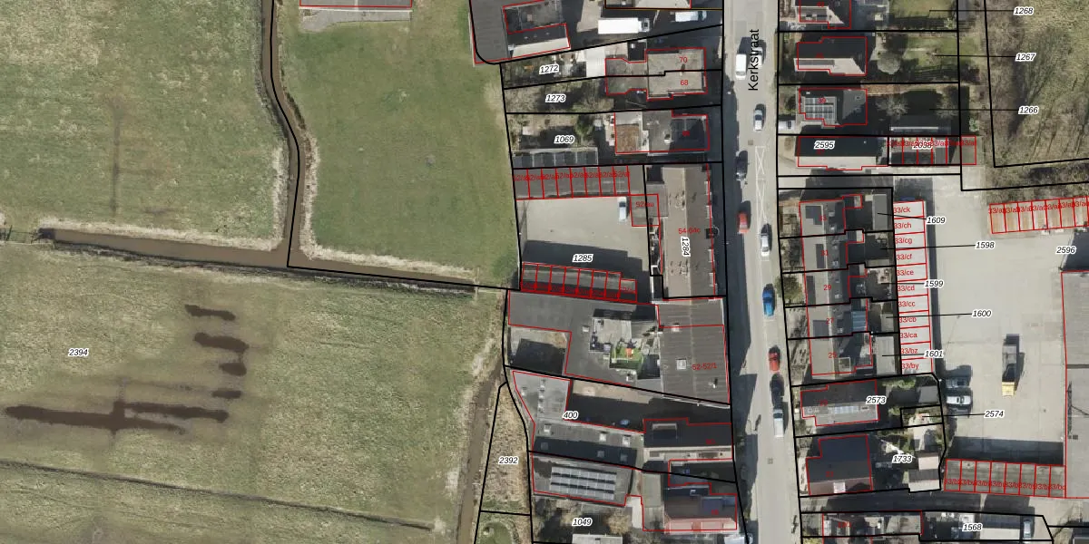 Het perceel waarop Kerkstraat 52-ag staat heeft een oppervlakte van 1266 m². Dit is een zeer groot perceel. De perceeloppervlakte wordt geregistreerd door het Kadaster. Gedetailleerde informatie over de maten van dit perceel kunt u vinden in het rapport Kadastrale kaart met maatvoering van Kerkstraat 52-ag.