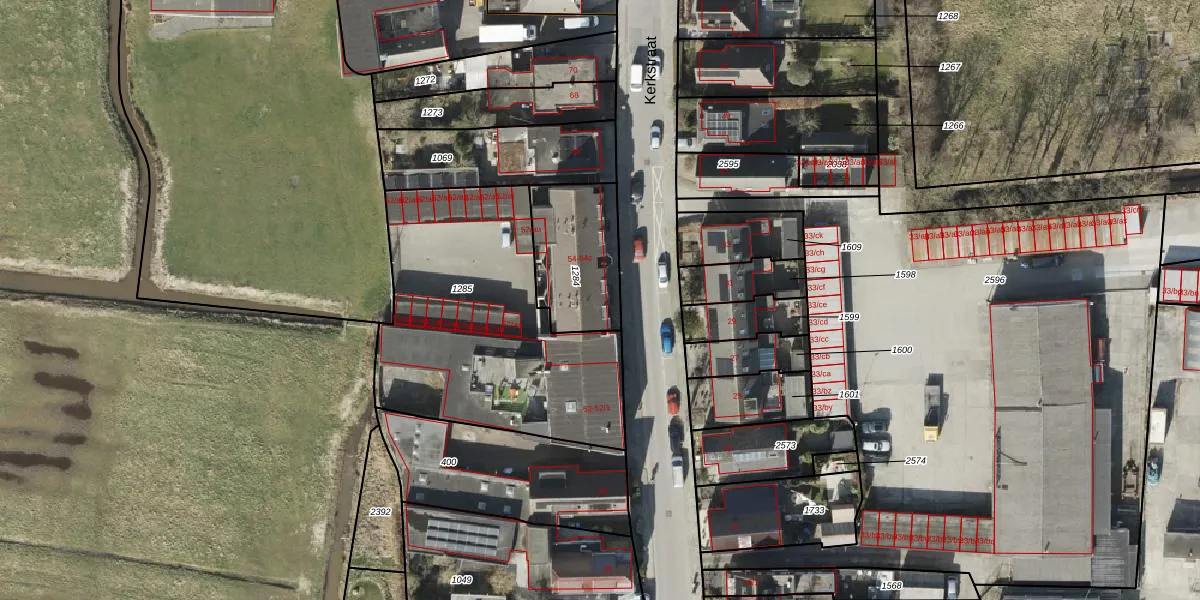 Kerkstraat 54 is gelegen op kadastraal perceel HKK02D1284. Deze kadastrale aanduiding is uniek en wordt gebruikt door het Kadaster om eigendomsrechten en andere zakelijke rechten vast te leggen. Het perceel maakt onderdeel uit van de kadastrale gemeente Hoogkerk.