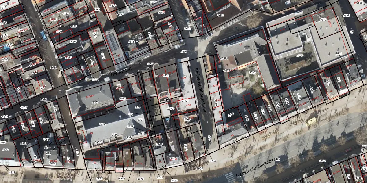 Kleine Haddingestraat 3-b is gelegen op kadastraal perceel GNG00I4655. Deze kadastrale aanduiding is uniek en wordt gebruikt door het Kadaster om eigendomsrechten en andere zakelijke rechten vast te leggen. Het perceel maakt onderdeel uit van de kadastrale gemeente Groningen.