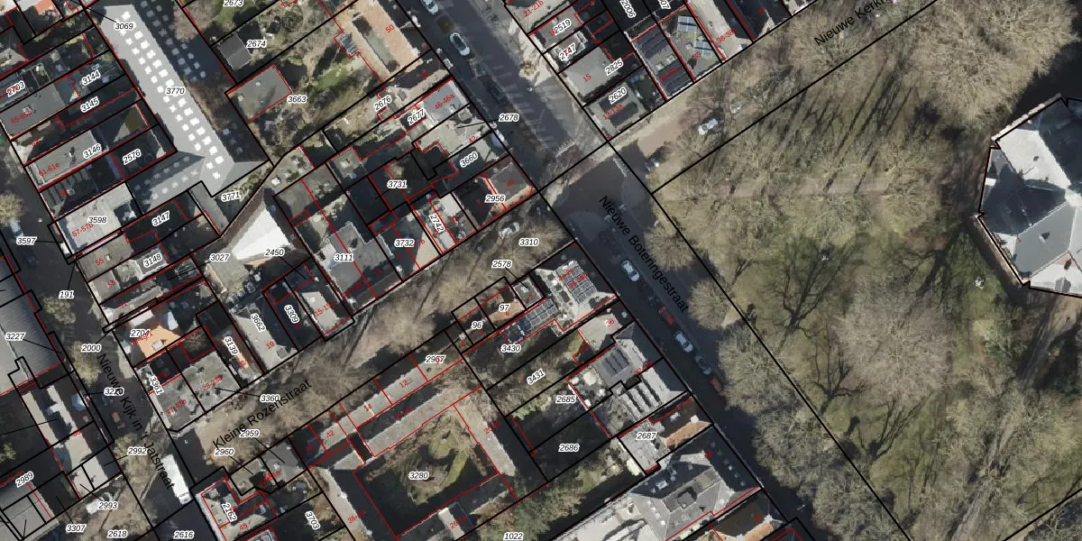 Het adres is gelegen op perceel 3430 in de sectie E en de kadastrale gemeente Groningen. De kadastrale aanduiding is aldus GNG00-E-3430. Het perceel is kleiner dan gemiddeld in Groningen. Het perceel is 280 m² groot, terwijl het gemiddelde ligt op 771,43 m². De grootste perceeloppervlakte in de kadastrale gemeente is 31,8 ha. De kleinste oppervlakte bedraagt 0 m². Op het perceel liggen in totaal 11 adressen. De laatste wijziging in het de Basisregistratie Kadaster (BRK) was op 19-06-2003.