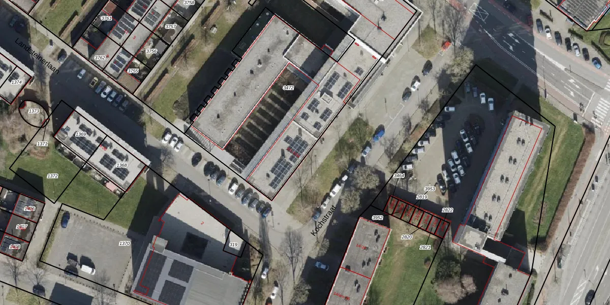 Het perceel waarop Kochstraat 1-2 staat heeft een oppervlakte van 5275 m². Dit is een zeer groot perceel. De perceeloppervlakte wordt geregistreerd door het Kadaster. Gedetailleerde informatie over de maten van dit perceel kunt u vinden in het rapport Kadastrale kaart met maatvoering van Kochstraat 1-2.