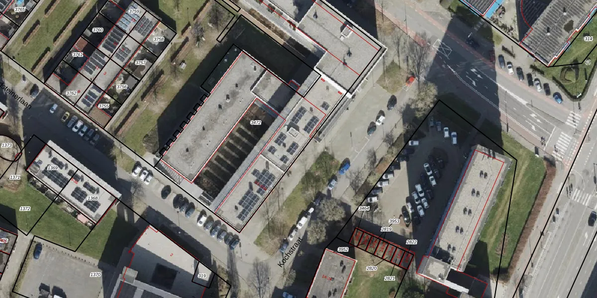 Het perceel waarop Kochstraat 1-9 staat heeft een oppervlakte van 5275 m². Dit is een zeer groot perceel. De perceeloppervlakte wordt geregistreerd door het Kadaster. Gedetailleerde informatie over de maten van dit perceel kunt u vinden in het rapport Kadastrale kaart met maatvoering van Kochstraat 1-9.