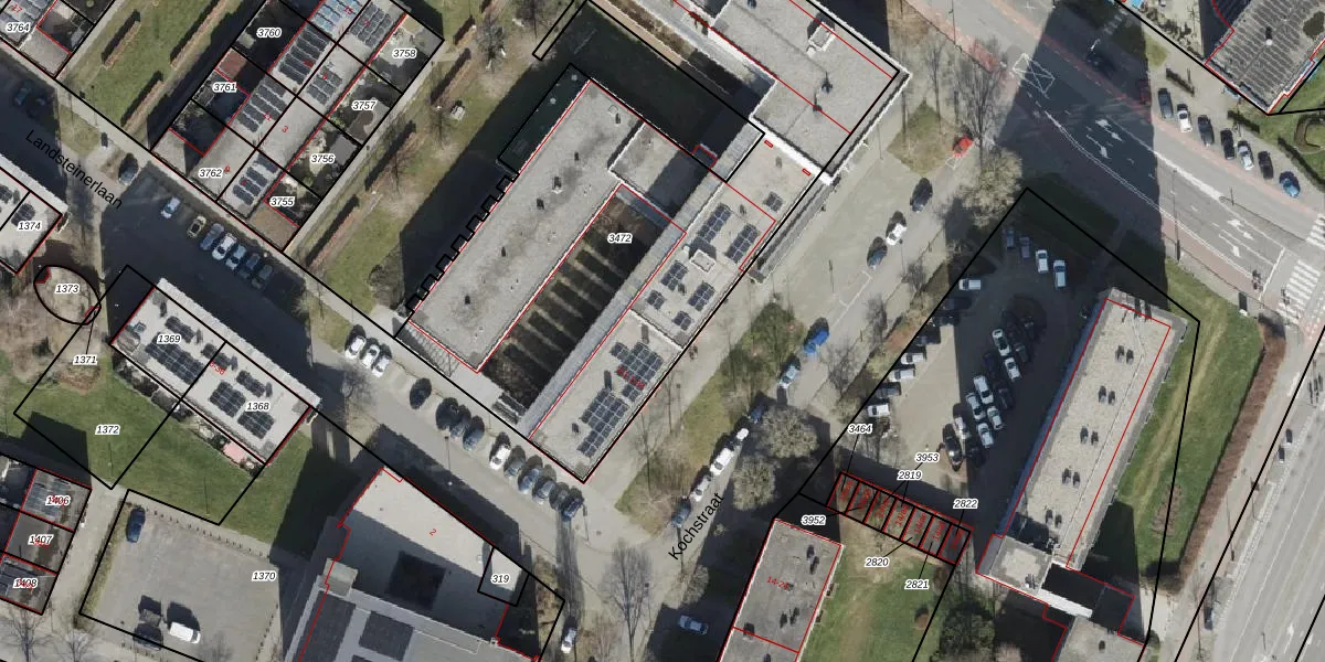 Het perceel waarop Kochstraat 1-15 staat heeft een oppervlakte van 5275 m². Dit is een zeer groot perceel. De perceeloppervlakte wordt geregistreerd door het Kadaster. Gedetailleerde informatie over de maten van dit perceel kunt u vinden in het rapport Kadastrale kaart met maatvoering van Kochstraat 1-15.