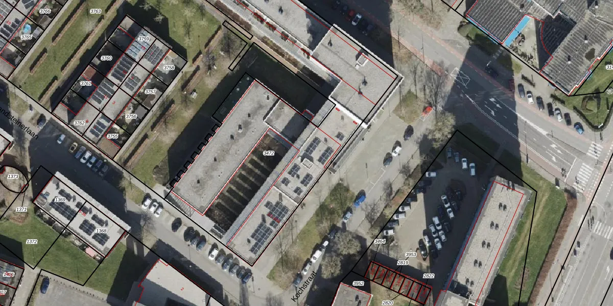 Het perceel waarop Kochstraat 1-32 staat heeft een oppervlakte van 5275 m². Dit is een zeer groot perceel. De perceeloppervlakte wordt geregistreerd door het Kadaster. Gedetailleerde informatie over de maten van dit perceel kunt u vinden in het rapport Kadastrale kaart met maatvoering van Kochstraat 1-32.
