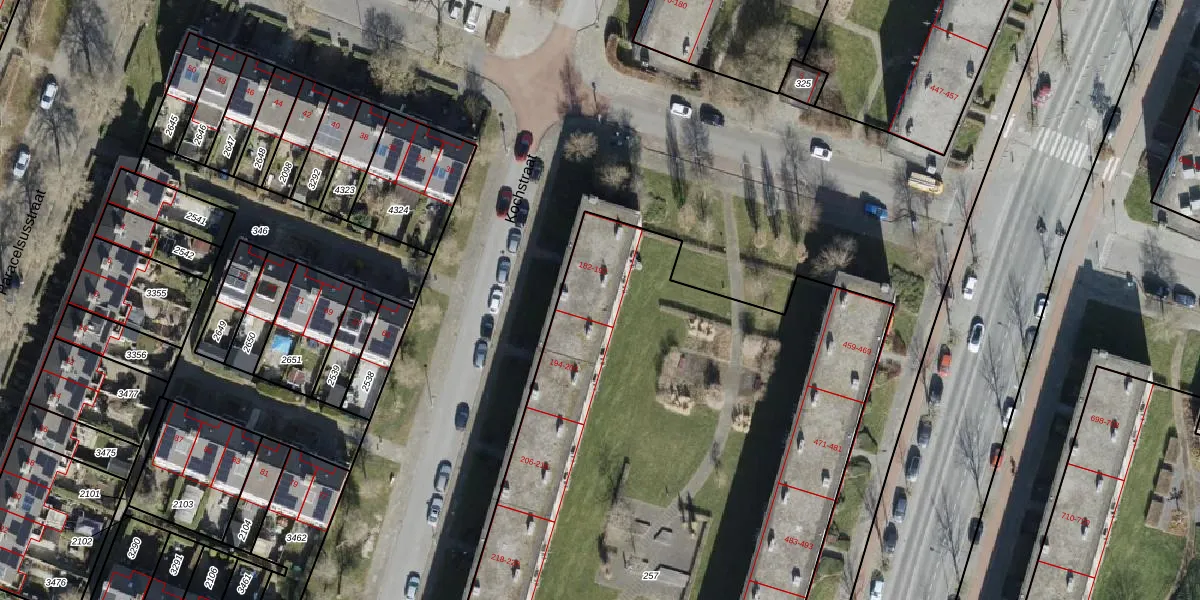 Het perceel waarop Kochstraat 188 staat heeft een oppervlakte van 5301 m². Dit is een zeer groot perceel. De perceeloppervlakte wordt geregistreerd door het Kadaster. Gedetailleerde informatie over de maten van dit perceel kunt u vinden in het rapport Kadastrale kaart met maatvoering van Kochstraat 188.