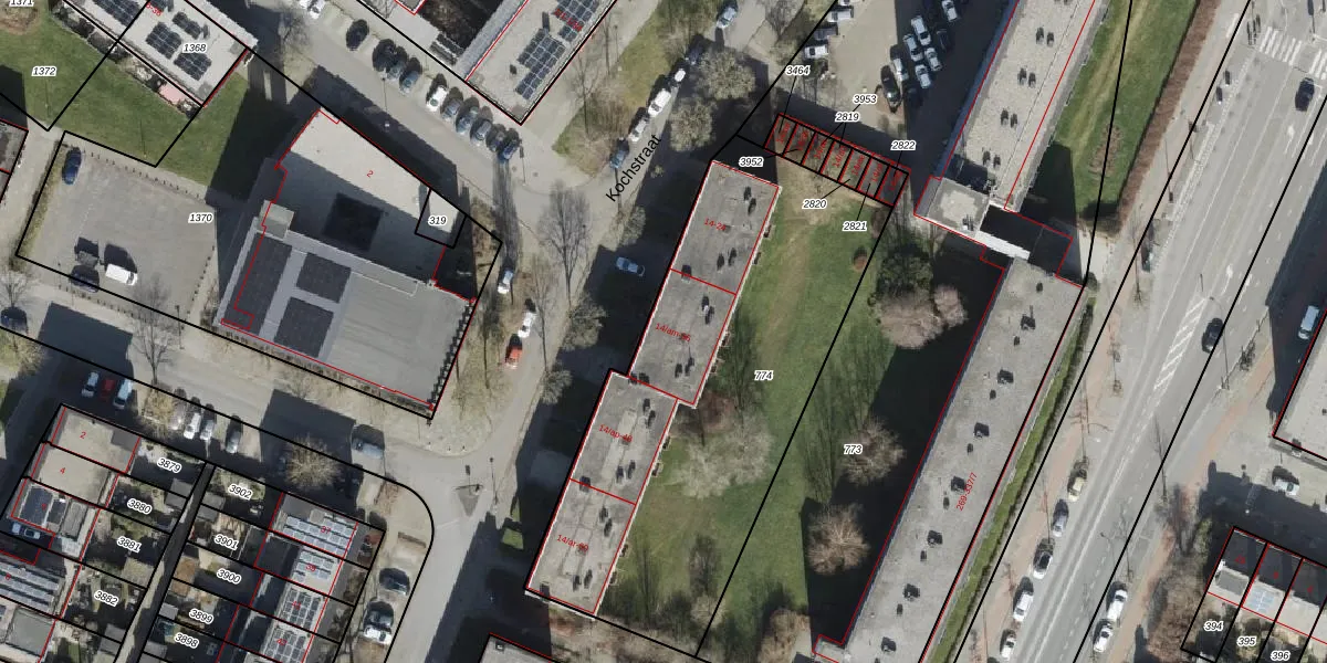 Het perceel waarop Kochstraat 28 staat heeft een oppervlakte van 2070 m². Dit is een zeer groot perceel. De perceeloppervlakte wordt geregistreerd door het Kadaster. Gedetailleerde informatie over de maten van dit perceel kunt u vinden in het rapport Kadastrale kaart met maatvoering van Kochstraat 28.