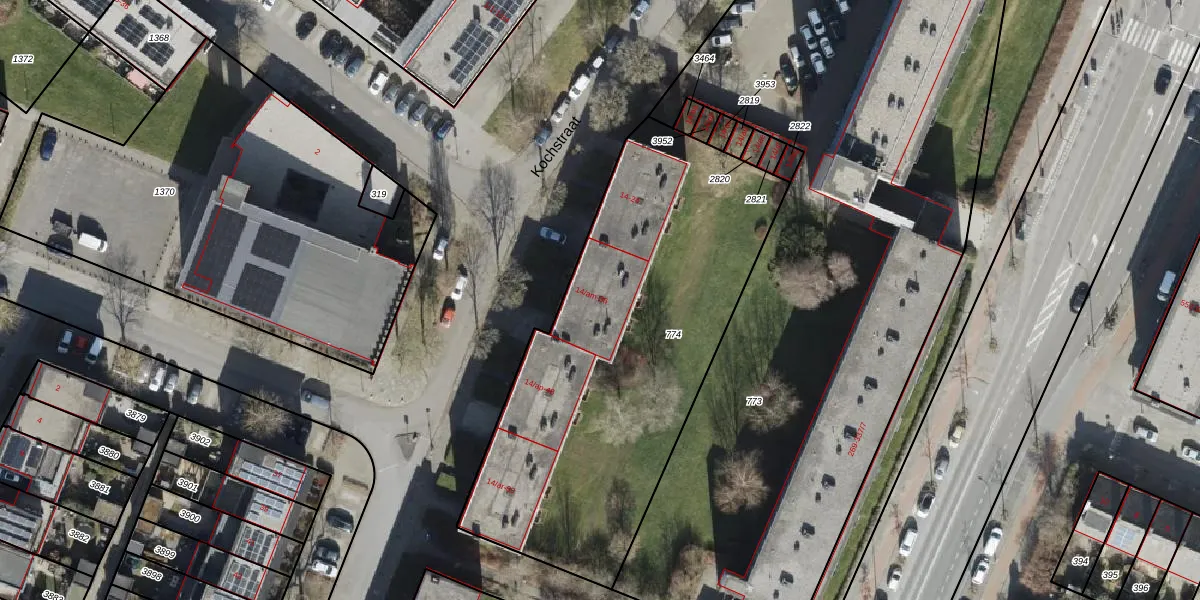 Het perceel waarop Kochstraat 34 staat heeft een oppervlakte van 2070 m². Dit is een zeer groot perceel. De perceeloppervlakte wordt geregistreerd door het Kadaster. Gedetailleerde informatie over de maten van dit perceel kunt u vinden in het rapport Kadastrale kaart met maatvoering van Kochstraat 34.