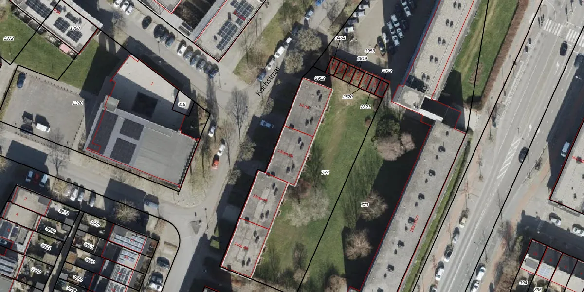 Het perceel waarop Kochstraat 36 staat heeft een oppervlakte van 2070 m². Dit is een zeer groot perceel. De perceeloppervlakte wordt geregistreerd door het Kadaster. Gedetailleerde informatie over de maten van dit perceel kunt u vinden in het rapport Kadastrale kaart met maatvoering van Kochstraat 36.