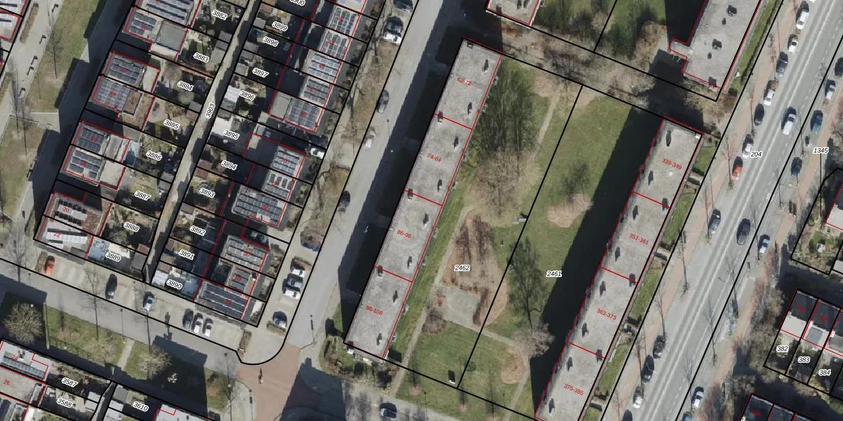 Het perceel waarop Kochstraat 96 staat heeft een oppervlakte van 2330 m². Dit is een zeer groot perceel. De perceeloppervlakte wordt geregistreerd door het Kadaster. Gedetailleerde informatie over de maten van dit perceel kunt u vinden in het rapport Kadastrale kaart met maatvoering van Kochstraat 96.