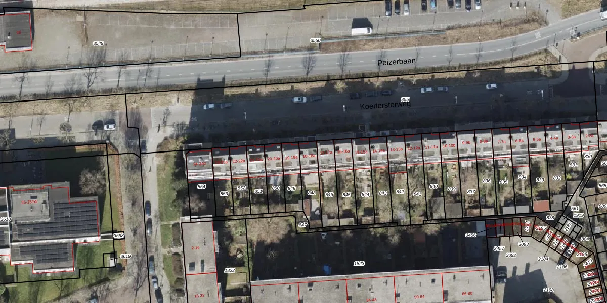 Koeriersterweg 18 is gelegen op kadastraal perceel GNG00R848. Deze kadastrale aanduiding is uniek en wordt gebruikt door het Kadaster om eigendomsrechten en andere zakelijke rechten vast te leggen. Het perceel maakt onderdeel uit van de kadastrale gemeente Groningen.