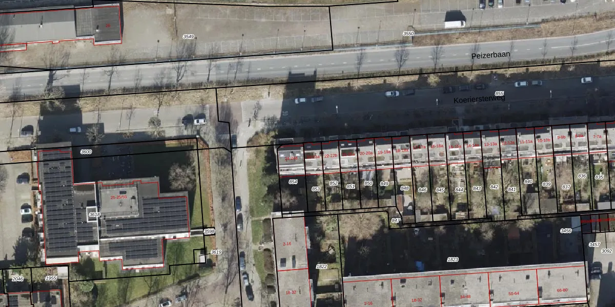 Koeriersterweg 23 is gelegen op kadastraal perceel GNG00R853. Deze kadastrale aanduiding is uniek en wordt gebruikt door het Kadaster om eigendomsrechten en andere zakelijke rechten vast te leggen. Het perceel maakt onderdeel uit van de kadastrale gemeente Groningen.