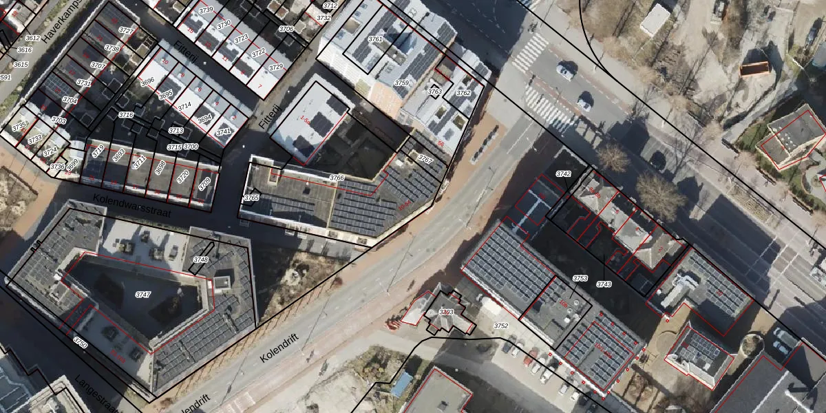 Kolendrift 10 is gelegen op kadastraal perceel GNG00F3766. Deze kadastrale aanduiding is uniek en wordt gebruikt door het Kadaster om eigendomsrechten en andere zakelijke rechten vast te leggen. Het perceel maakt onderdeel uit van de kadastrale gemeente Groningen.