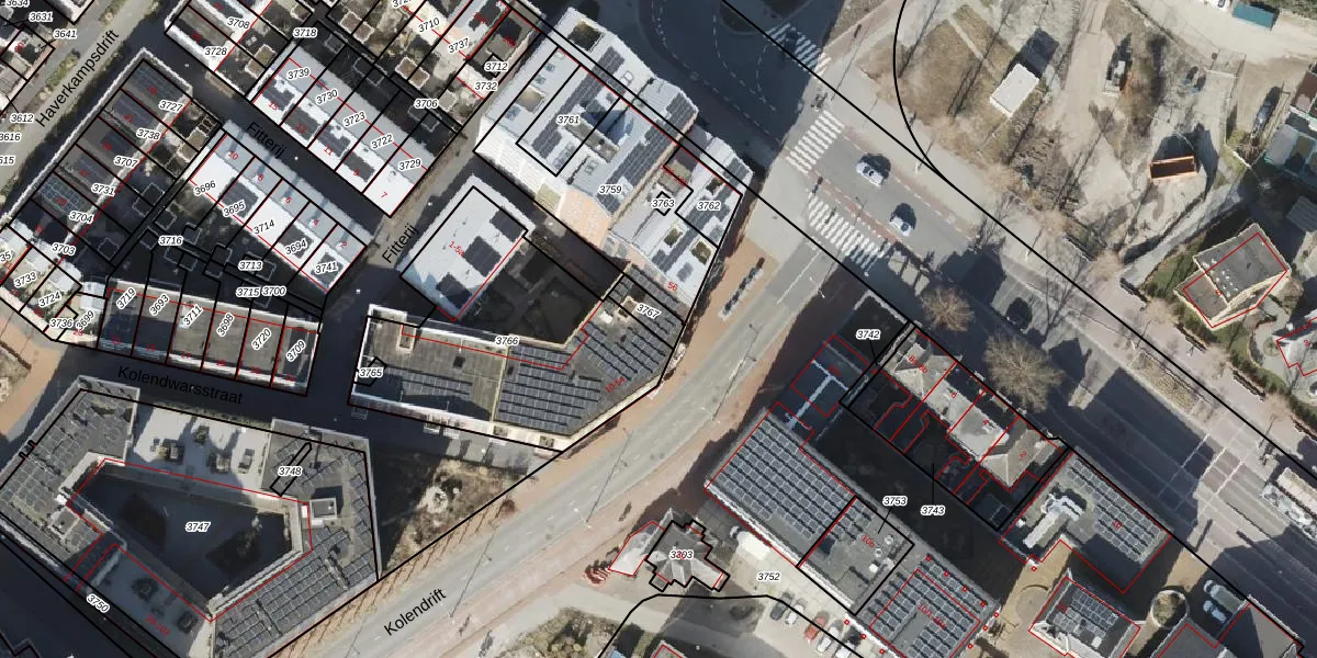 Kolendrift 20 is gelegen op kadastraal perceel GNG00F3767. Deze kadastrale aanduiding is uniek en wordt gebruikt door het Kadaster om eigendomsrechten en andere zakelijke rechten vast te leggen. Het perceel maakt onderdeel uit van de kadastrale gemeente Groningen.