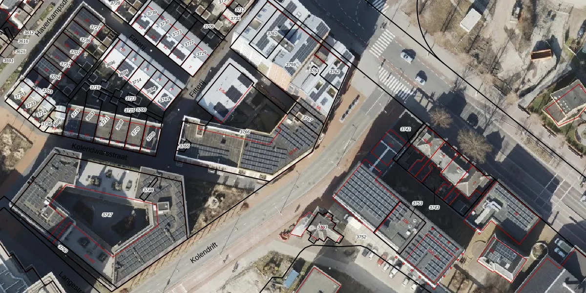 Kolendrift 22 is gelegen op kadastraal perceel GNG00F3766. Deze kadastrale aanduiding is uniek en wordt gebruikt door het Kadaster om eigendomsrechten en andere zakelijke rechten vast te leggen. Het perceel maakt onderdeel uit van de kadastrale gemeente Groningen.