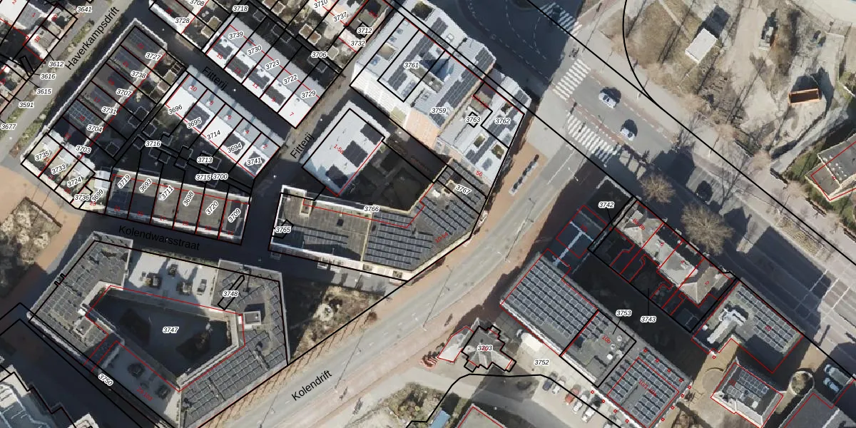 Kolendrift 50 is gelegen op kadastraal perceel GNG00F3766. Deze kadastrale aanduiding is uniek en wordt gebruikt door het Kadaster om eigendomsrechten en andere zakelijke rechten vast te leggen. Het perceel maakt onderdeel uit van de kadastrale gemeente Groningen.