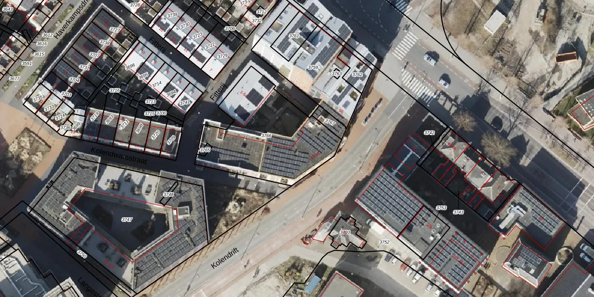 Kolendrift 52 is gelegen op kadastraal perceel GNG00F3766. Deze kadastrale aanduiding is uniek en wordt gebruikt door het Kadaster om eigendomsrechten en andere zakelijke rechten vast te leggen. Het perceel maakt onderdeel uit van de kadastrale gemeente Groningen.