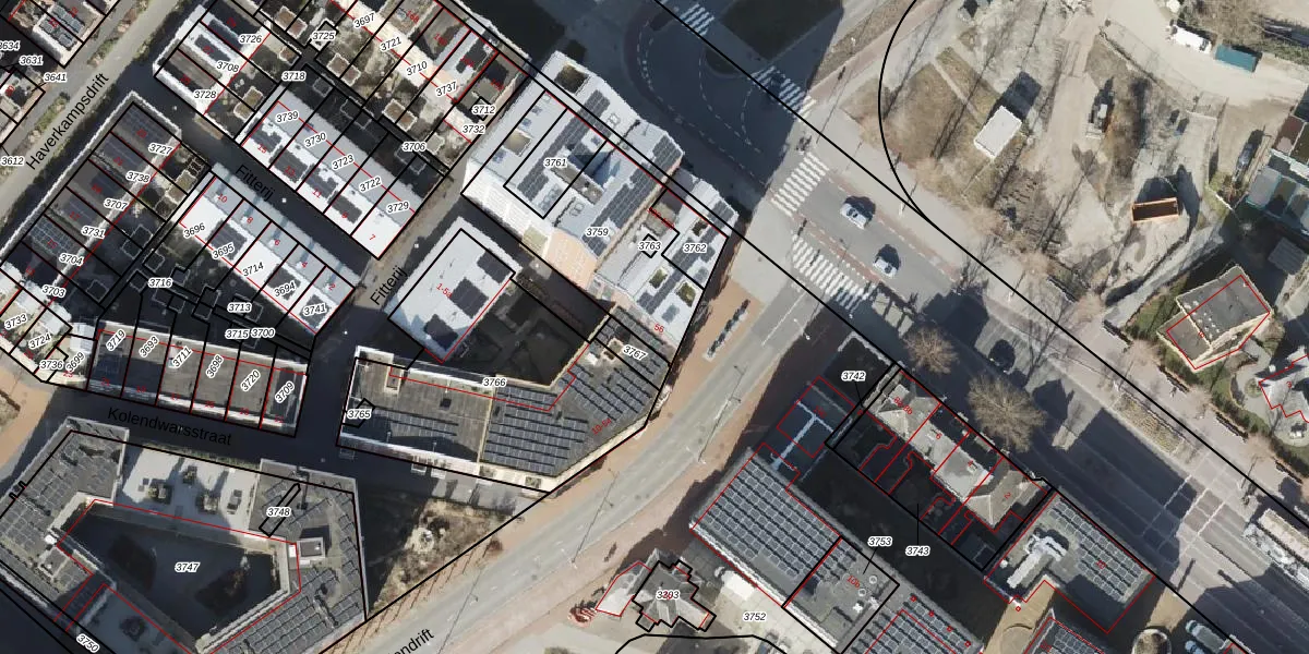 Kolendrift 56 is gelegen op kadastraal perceel GNG00F3759. Deze kadastrale aanduiding is uniek en wordt gebruikt door het Kadaster om eigendomsrechten en andere zakelijke rechten vast te leggen. Het perceel maakt onderdeel uit van de kadastrale gemeente Groningen.