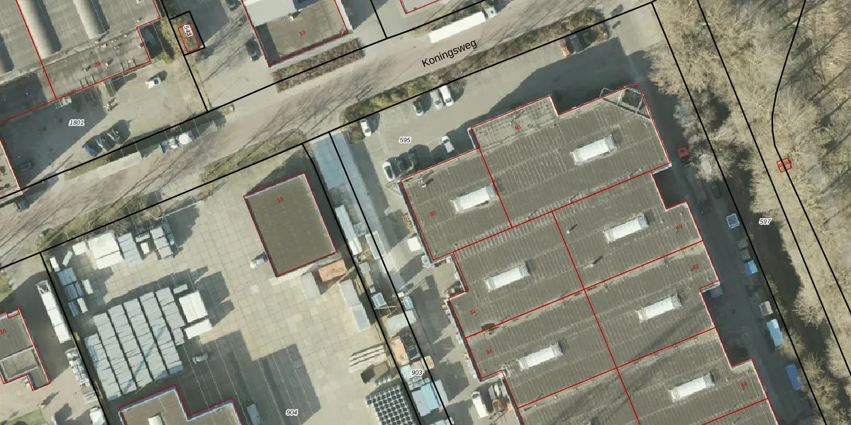 Het perceel waarop Koningsweg 30 staat heeft een oppervlakte van 1,0 ha. Dit is een zeer groot perceel. De perceeloppervlakte wordt geregistreerd door het Kadaster. Gedetailleerde informatie over de maten van dit perceel kunt u vinden in het rapport Kadastrale kaart met maatvoering van Koningsweg 30.