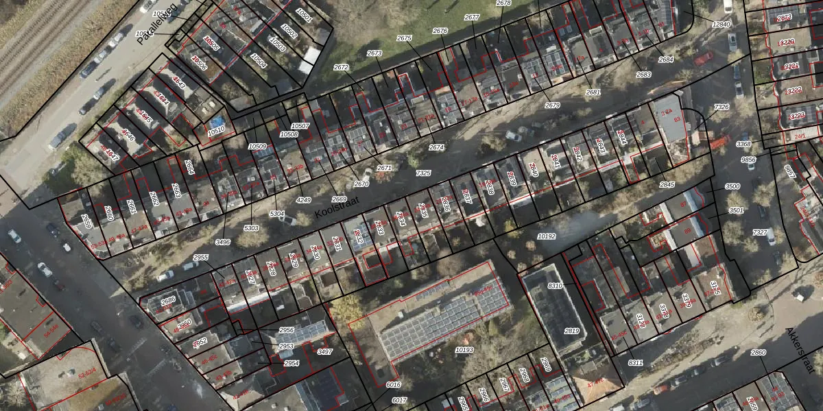 Het perceel waarop Koolstraat 24 staat heeft een oppervlakte van 96 m². Dit is een klein perceel. De perceeloppervlakte wordt geregistreerd door het Kadaster. Gedetailleerde informatie over de maten van dit perceel kunt u vinden in het rapport Kadastrale kaart met maatvoering van Koolstraat 24.