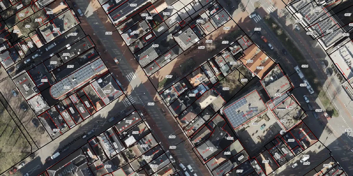 Korenstraat 1-1 is gelegen op kadastraal perceel GNG00F2312. Deze kadastrale aanduiding is uniek en wordt gebruikt door het Kadaster om eigendomsrechten en andere zakelijke rechten vast te leggen. Het perceel maakt onderdeel uit van de kadastrale gemeente Groningen.