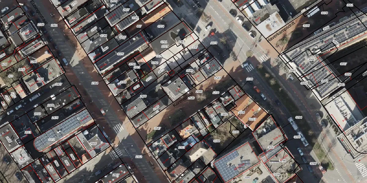 Korenstraat 2-a is gelegen op kadastraal perceel GNG00F2546. Deze kadastrale aanduiding is uniek en wordt gebruikt door het Kadaster om eigendomsrechten en andere zakelijke rechten vast te leggen. Het perceel maakt onderdeel uit van de kadastrale gemeente Groningen.
