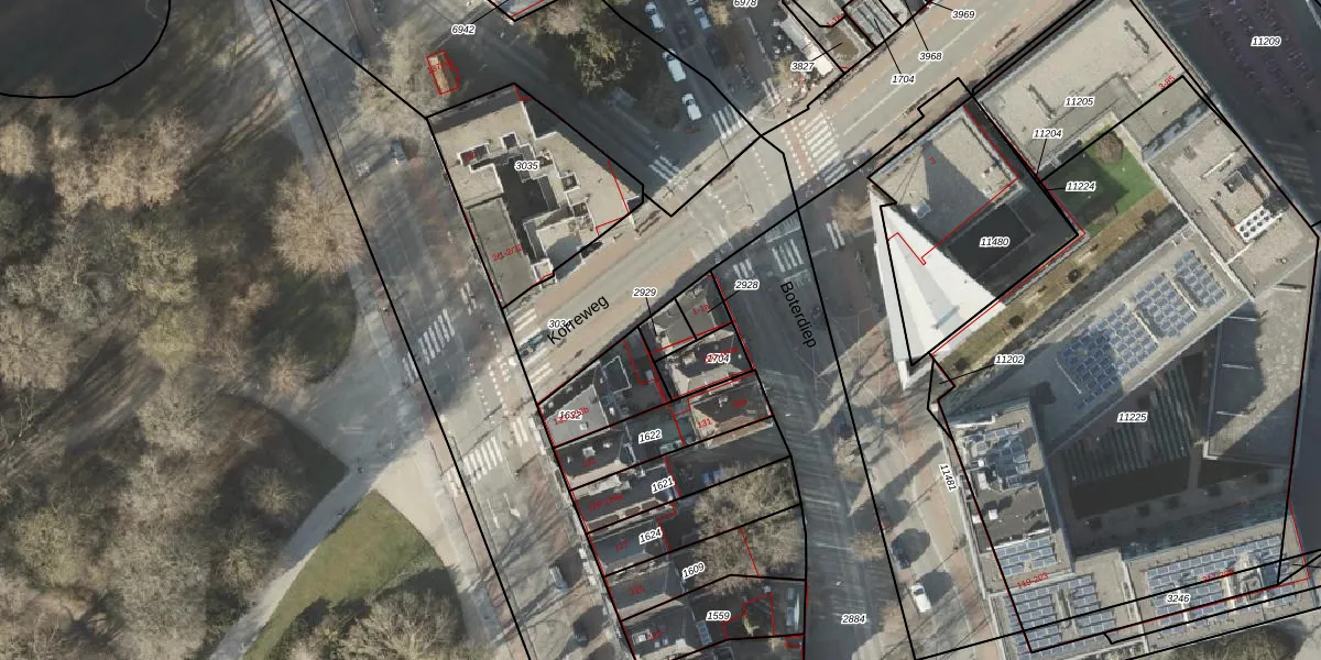 Korreweg 1 is gelegen op kadastraal perceel GNG00F2929. Deze kadastrale aanduiding is uniek en wordt gebruikt door het Kadaster om eigendomsrechten en andere zakelijke rechten vast te leggen. Het perceel maakt onderdeel uit van de kadastrale gemeente Groningen.