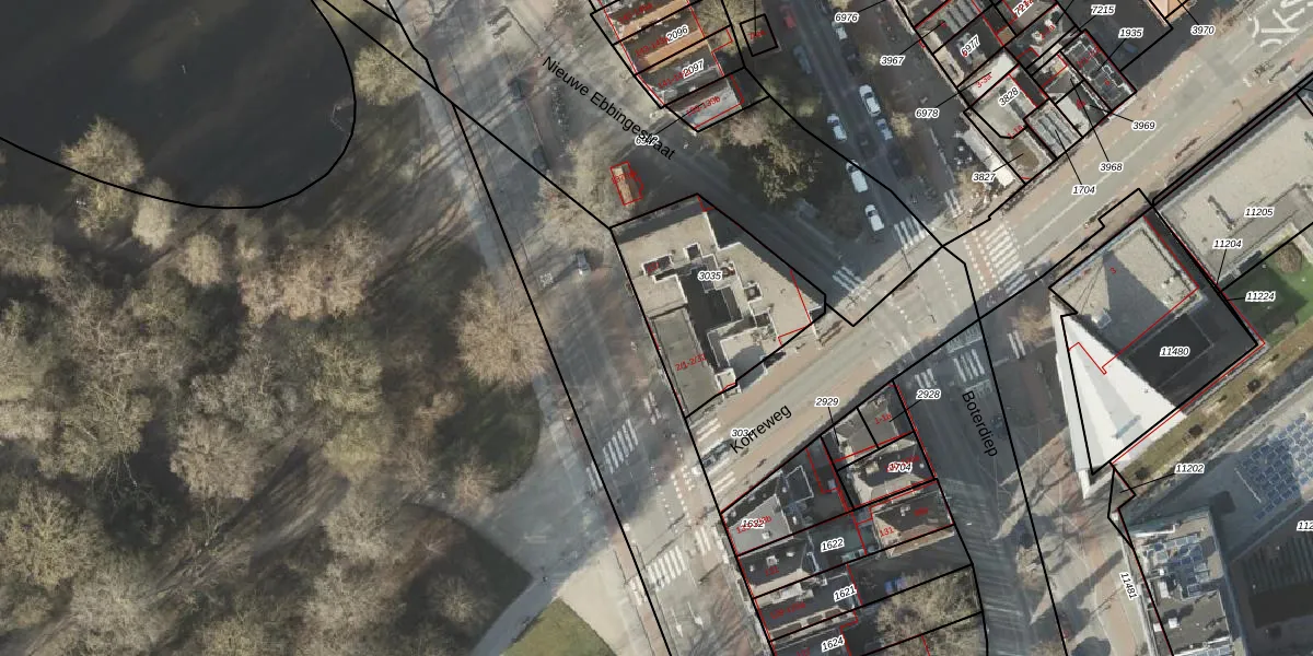Korreweg 2-2 is gelegen op kadastraal perceel GNG00F3035. Deze kadastrale aanduiding is uniek en wordt gebruikt door het Kadaster om eigendomsrechten en andere zakelijke rechten vast te leggen. Het perceel maakt onderdeel uit van de kadastrale gemeente Groningen.