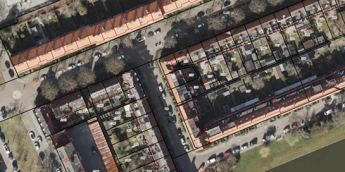 Het perceel waarop het adres ligt is GNG00-R-715. De afkorting 'GNG00' staat voor kadastrale gemeente Groningen. De gemiddelde perceelgrootte in Groningen is 770,65 m². Dit perceel is kleiner: de perceeloppervlakte bedraagt 149 m². Het grootste perceel in de kadastrale gemeente is 31,8 ha. Het kleinste perceel heeft een oppervlakte van 0 m². Er zijn 3 adressen aanwezig op het perceel. De huidige grenzen van het perceel zijn digitaal in de Basisregistratie Kadaster (BRK) geregistreerd op 15-08-2003.